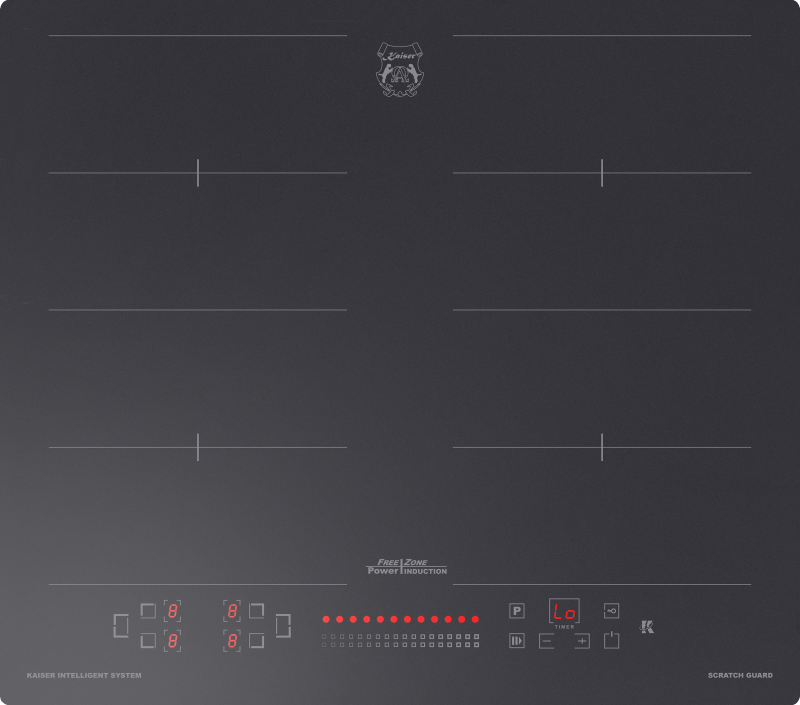 | | Kochzonen | 4 QuickHeat Induktions-Kochzonen, davon 2 x 2 Flexible FREE-ZONE alle mit Power-Funktion