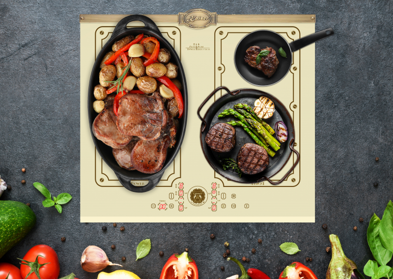 | Kochzonen | 4 QuickHeat Induktions-Kochzonen, davon 2 x 4 flexible FREE-ZONE alle mit Power-Funktion